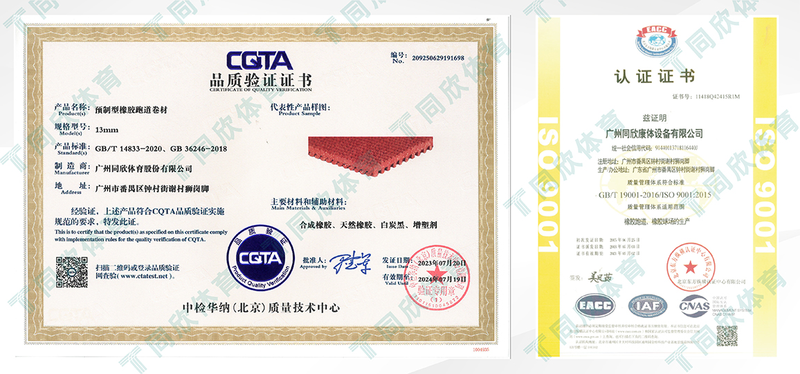 同欣預(yù)制型橡膠跑道的質(zhì)量認證